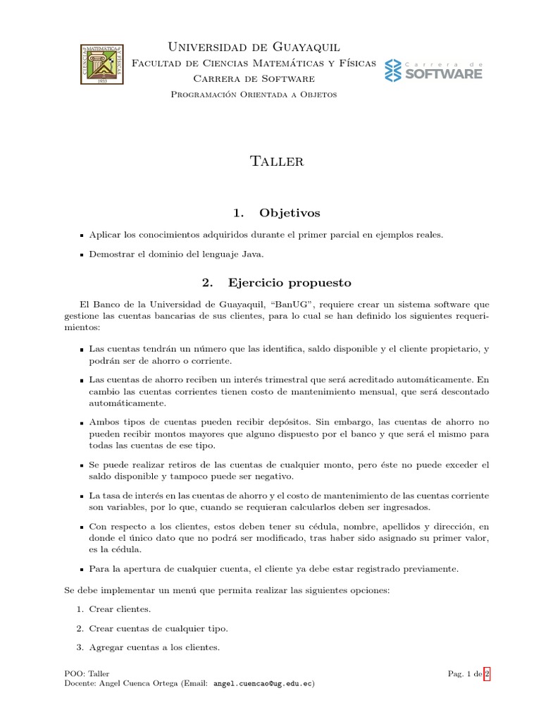 El Banco de la Universidad de Guayaquil, “BanUG”, requiere crear un sistema software que