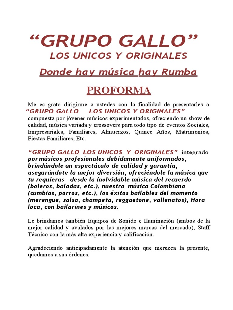 GRUPO GALLO LOS UNICOS Y ORIGINALES”