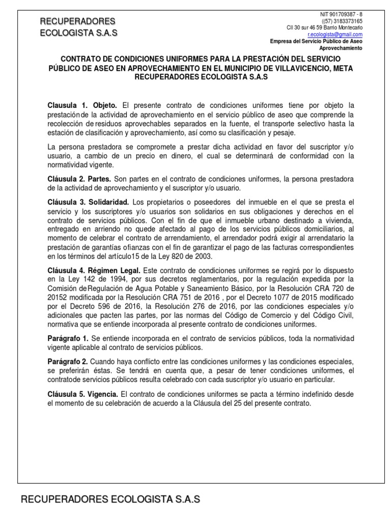 CONTRATO DE CONDICIONES UNIFORMES PARA LA PRESTACIÓN DEL SERVICIO