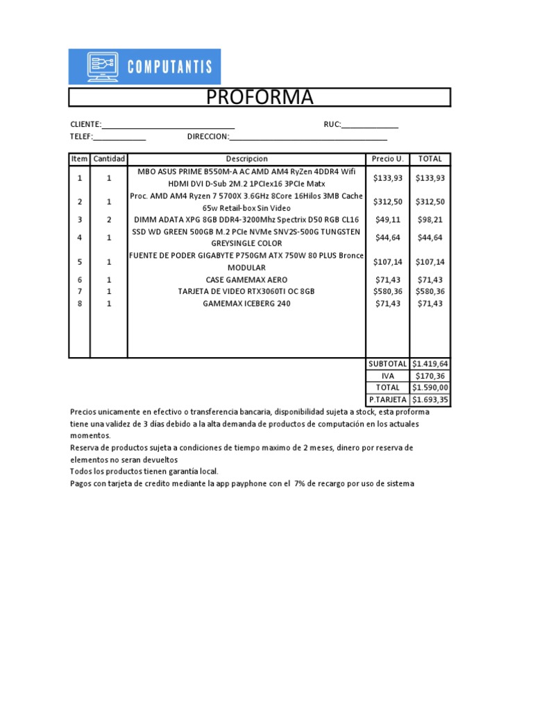 tiene una validez de 3 días debido a la alta demanda de productos de computación en los actuales