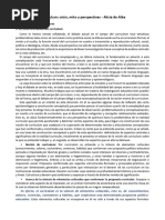 motivaciones son distintas al subrayarse la relevancia que tiene el conocimiento para que, una vez aprehendido, los sujetos puedan emanciparse socialmente aqu y ahora. Como institucin, la escuela tiene una doble finalidad: socializar a los discentes en el marco de una cultura que se considera de inters y, junto a ello, preparar al estudiante para su insercin en el mundo laboral. Ello se realiza a travs de procesos de enseanza-aprendizaje vehiculadores de unos contenidos curriculares que son producto de una seleccin histricamente determinada; su transmisin se hace mediante unas disciplinas escolares. La particularidad del conocimiento escolar con respecto a aquel del que procede, se ha defendido desde el anlisis histrico de la construccin de las materias escolares. Un claro ejemplo de esta lnea de trabajo nos lo suministra la obra que es objeto de nuestro inters, escrita -como se dice en la escueta presentacin incluida en la solapa- para proporcionar en castellano una visin sinttica sobre una historia del curriculum que no presenta a "... la escuela como una caja negra cerrada, cuyo contenido no se analiza." Desde el punto de vista de su estructura interna, el trabajo se divide en tres grandes partes, con nueve captulos y un glosario de personas y conceptos -hecho por tres colaboradores de la Universidad de Granada- que se ha confeccionado para facilitar la comprensin de trminos resaltados con un asterisco a lo largo del discurso. Dentro del primer bloque -La necesidad de una historia del curriculum- se incluyen cuatro captulos en los que se ofrece la perspectiva terica desde la que se realiza el discurso. En el inicial, se ponen de relieve las insuficiencias del enfoque denominado externalistainstitucionalista postulndose la necesidad de una Historia de la Educacin (HE) entendida "... como el producto socio-histrico de perodos concretos y de condiciones para la accin." (pg. 28). El captulo segundo es importante, puesto que dentro del mismo se tematizan tres variables bsicas para entender tanto los cambios como las continuidades: a modo de prtico, se vuelven a criticar los paradigmas tradicionales de investigacin en el campo de la HE, tanto en su vertiente tradicional como revisionista (sociopoltica), puesto que tienen en comn una aproximacin externalista a la escuela como objeto de estudio. Frente a este enfoque, la HE analizara la constitucin de mecanismos de diferenciacin social entre los estudiantes, a travs, precisamente, de las materias escolares. Usando ejemplos de campos como el de la psiquiatra, la biologa o las ciencias llega (pg. 35) a tres conclusiones que creemos de inters: a) El carcter no monoltico de las disciplinas; b) El diferente contenido de los discursos que se emplean para justificar la inclusin de una materia en el curriculum escolar -con races pedaggico-utilitarias o acadmicas; c) La conveniencia de interpretar el debate sobre el curriculum en trminos de pugnas entre materias que luchan por asuntos muy concretos: estatus, recursos y territorio. Dentro del tercero se plantea el importante asunto relacionado con el contexto en el que se producen los inventos culturales, tomando como punto de partida la creacin y consolidacin de un sistema educativo estatal. La diferenciacin social que se produce mediante el mecanismo del curriculum se pone en relacin con la aparicin del sistema de