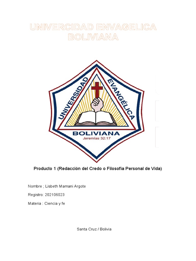 Producto 1 (Redacción del Credo o Filosofía Personal de Vida)
