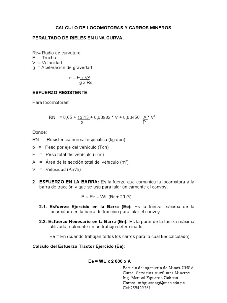 CALCULO DE LOCOMOTORAS Y CARROS MINEROS