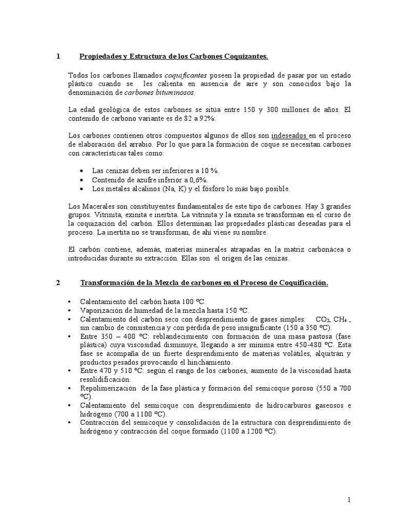 de elaboración del arrabio. Por lo que para la formación de coque se necesitan carbones