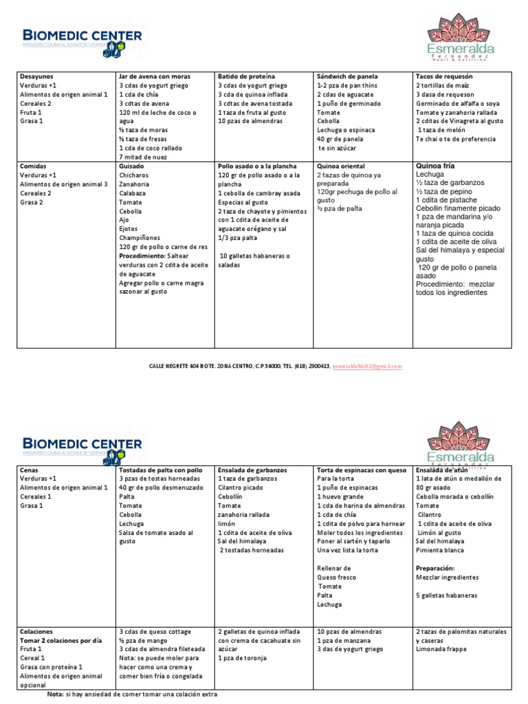 Alimentos de origen animal 1 1 cda de chía 3 cda de quinoa inflada 2 cdas de aguacate 3 dasa de requeson