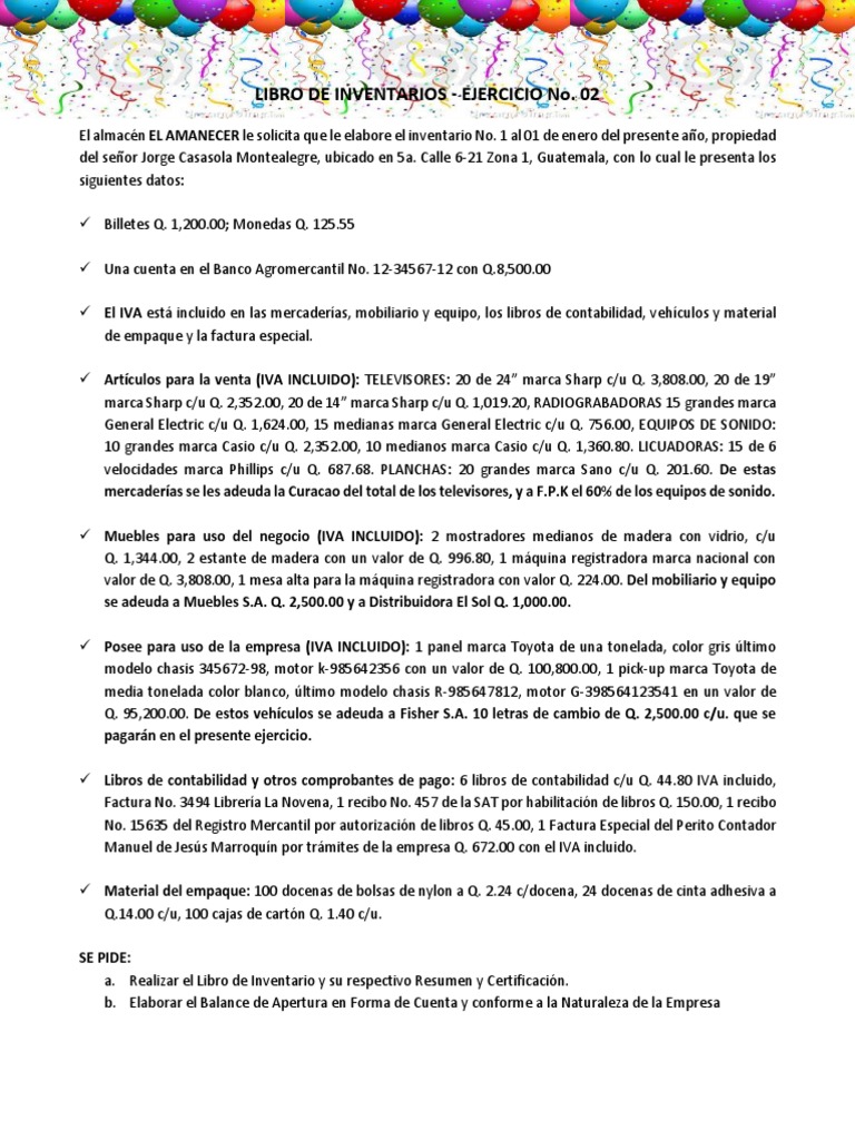 LIBRO DE INVENTARIOS - EJERCICIO No.