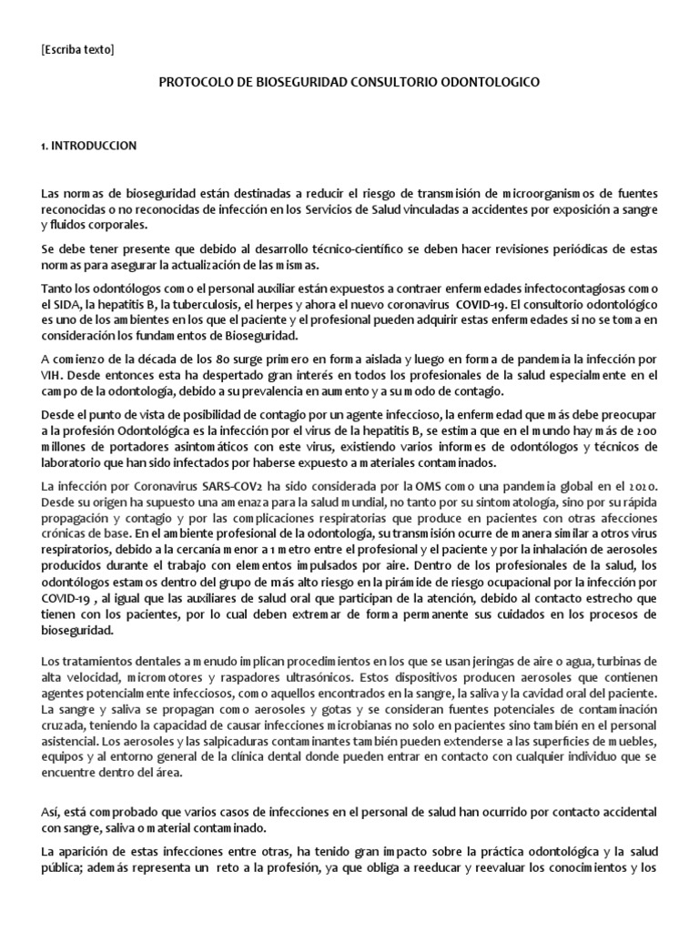 El Protocolo de Bioseguridad implementado, es aplicable a todas las áreas del consultorio donde se realicen