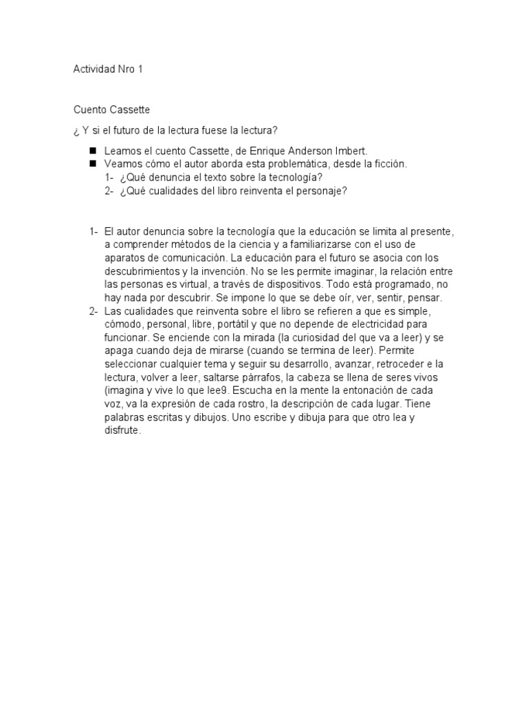 Leamos el cuento Cassette, de Enrique Anderson Imbert.