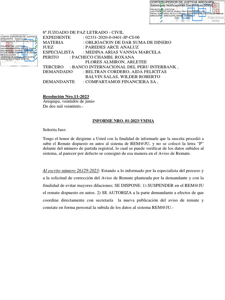AREQUIPA - Sistema de EXPEDIENTE : 02331-2020-0-0401-JP-CI-06