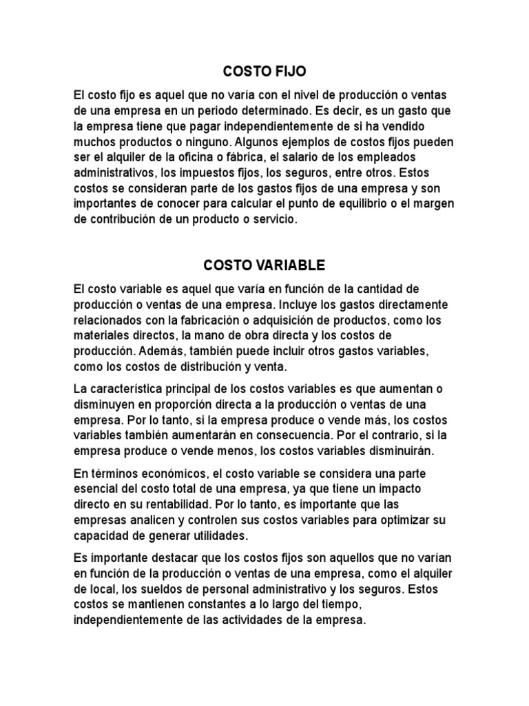 Los costos fijos son aquellos gastos que no varían en relación a las