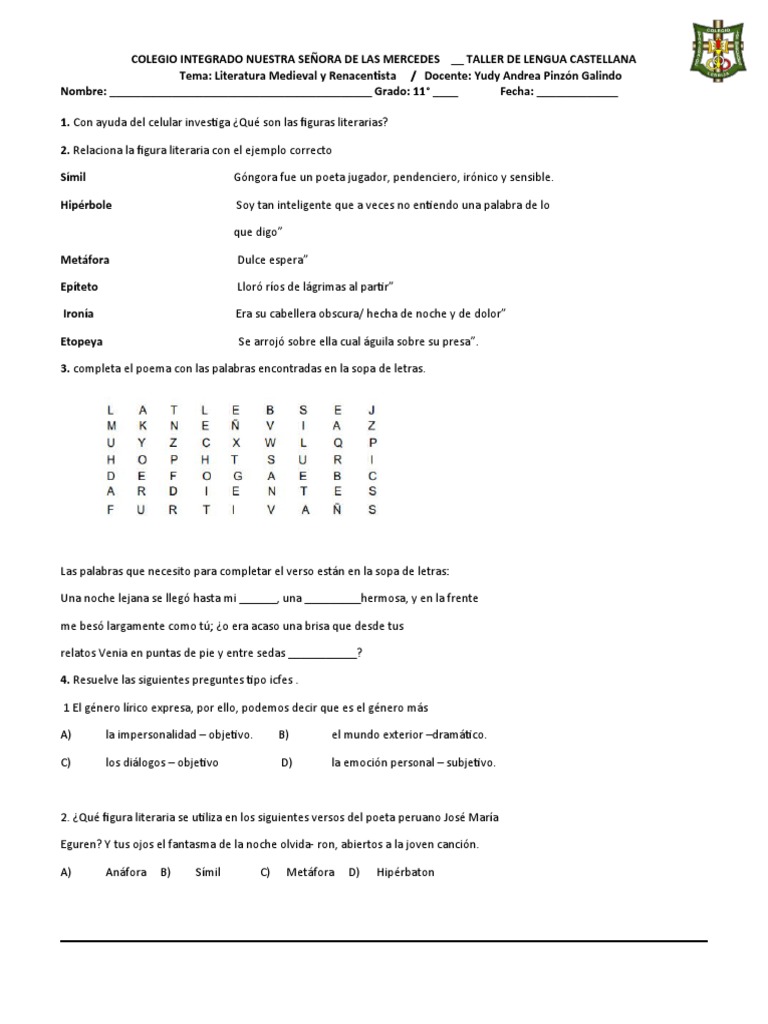 COLEGIO INTEGRADO NUESTRA SEÑORA DE LAS MERCEDES __ TALLER DE LENGUA CASTELLANA