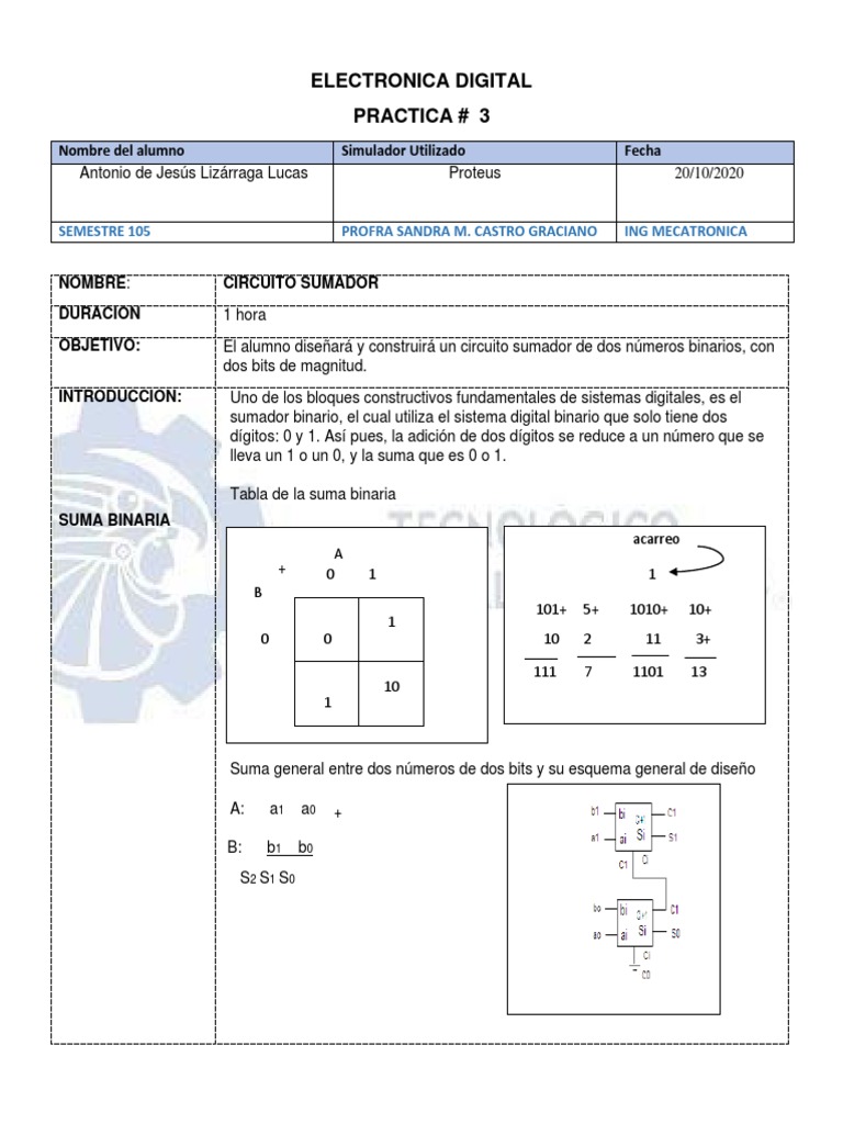 OBJETIVO: El alumno diseñará y construirá un circuito sumador de dos números binarios, con