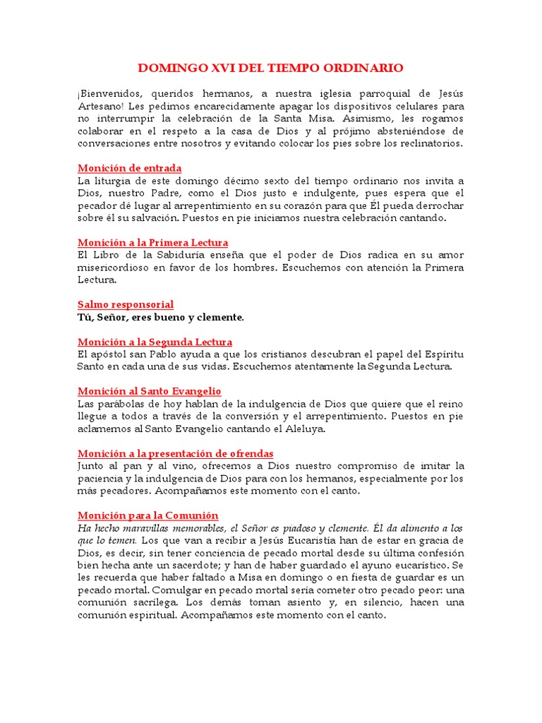DOMINGO XVI DEL TIEMPO ORDINARIO