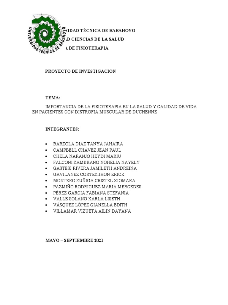 Fisioterapéutico de la DMD. Así como intervenciones activas para abordar los aspectos