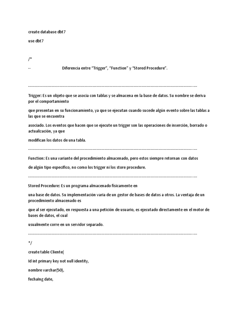 -- Diferencia entre “Trigger”, “Function” y “Stored Procedure”.