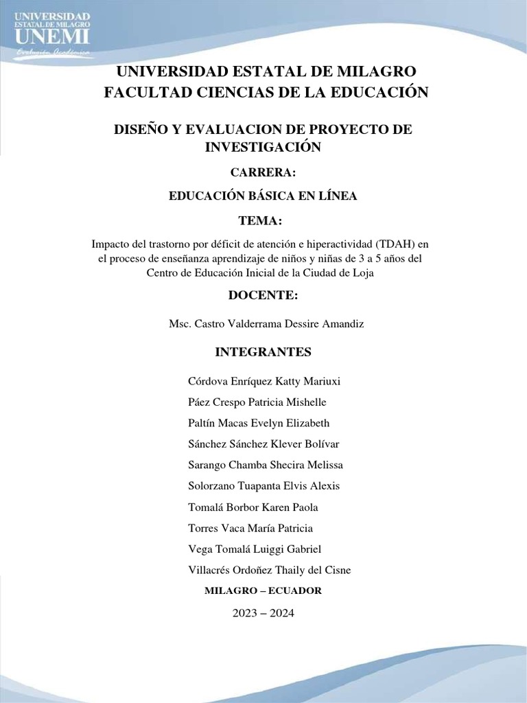 atención e hiperactividad (TDAH). Denominado la problemática que se presenta