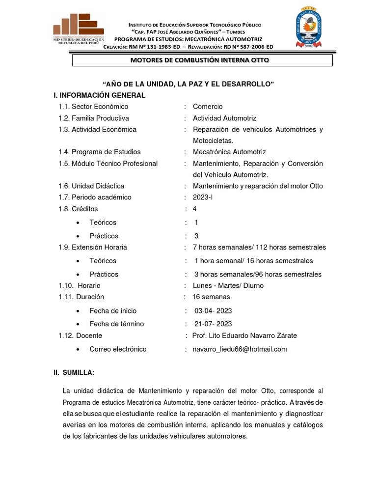 La unidad didáctica es fundamental porque permitirá al estudiante conocer de los motores