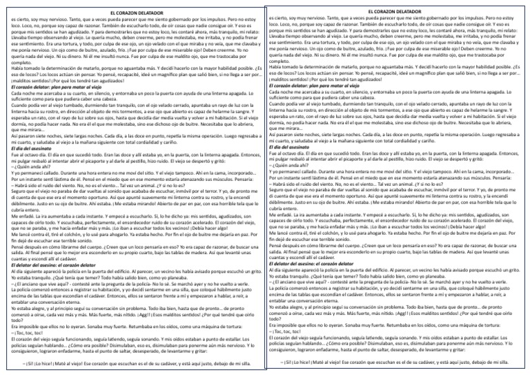 porque mis sentidos se han agudizado. Y para demostrarles que no estoy loco, les contaré ahora, más tranquilo, mi relato: porque mis sentidos se han agudizado. Y para demostrarles que no estoy loco, les contaré ahora, más tranquilo, mi relato: