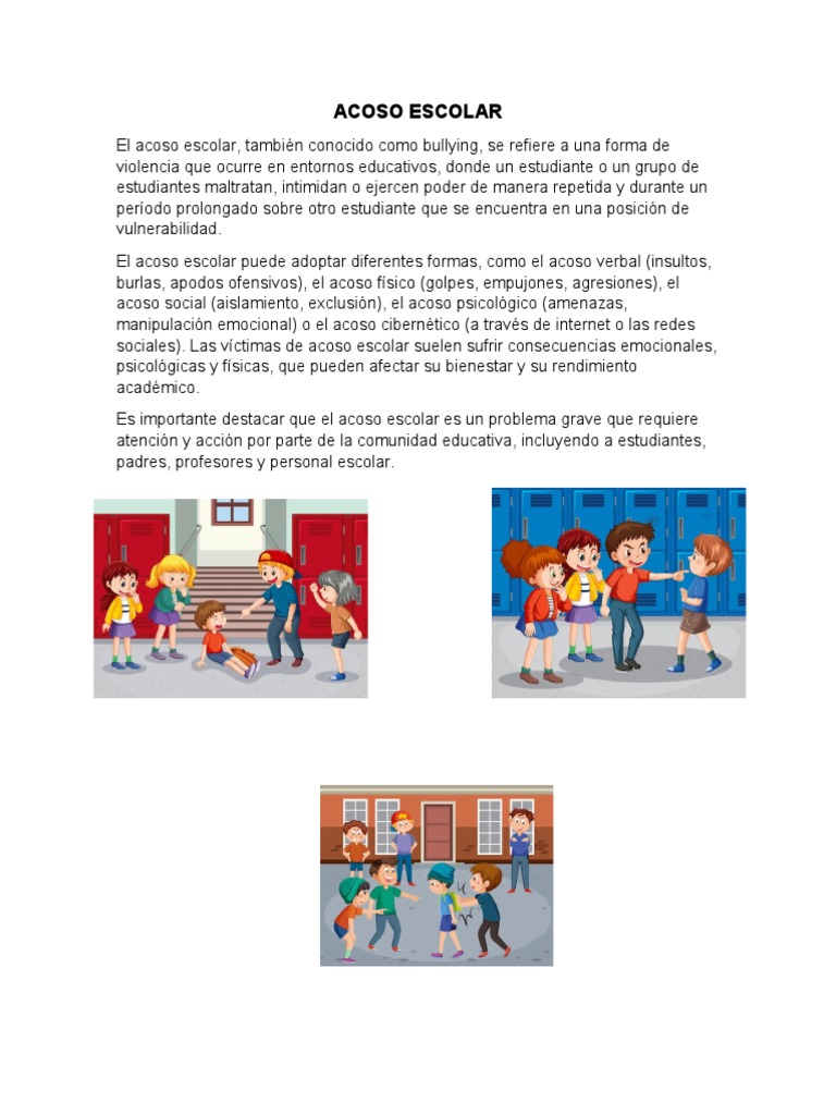 El acoso escolar, también conocido como bullying, se refiere a una forma de