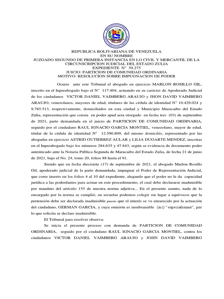 seguido por el ciudadano RAUL IGNACIO GARCIA MONTIEL, venezolano, mayor de edad,
