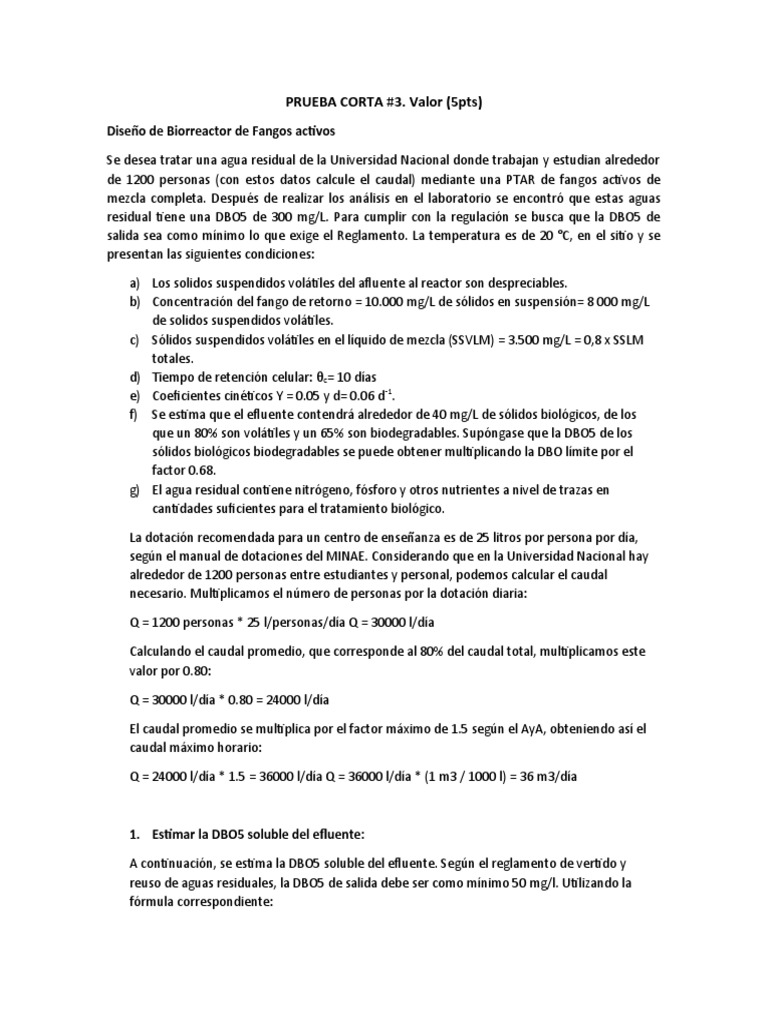 Resolviendo esta ecuación, encontramos que la DBO5 soluble del efluente es de