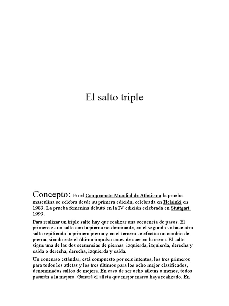 Para realizar un triple salto hay que realizar una secuencia de pasos. El