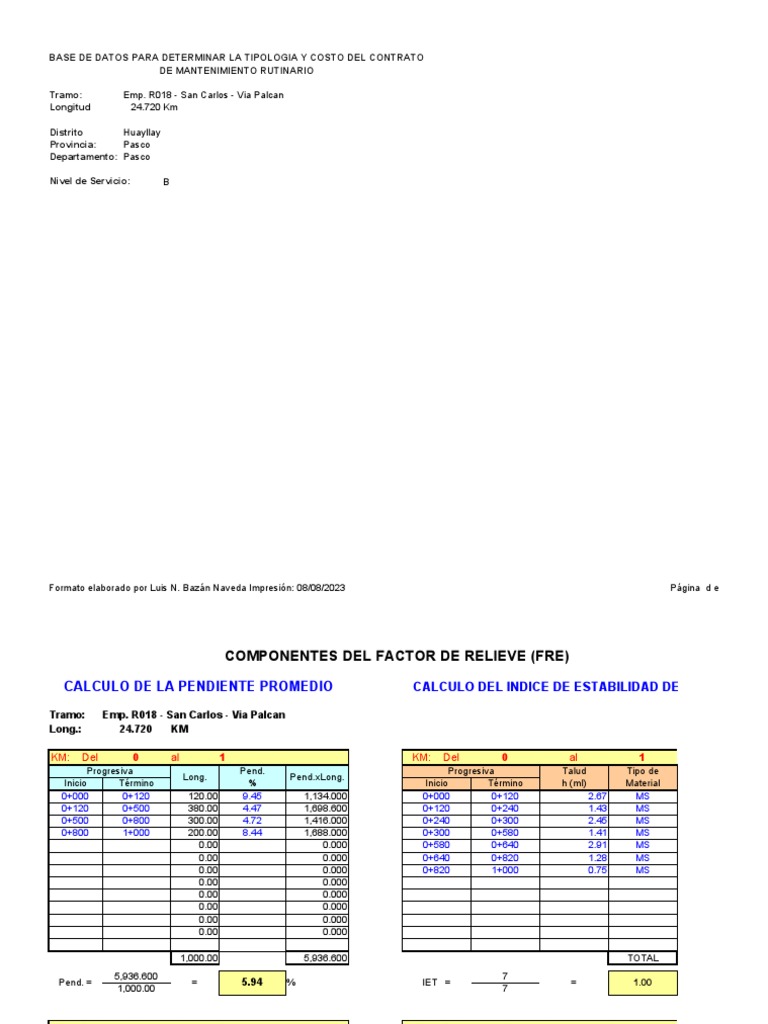 PEND. LONG. Est. Talud Obras de Drenaje PRECIPITACION