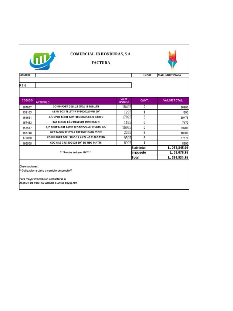 ***Precios Incluyen ISV*** Impuesto L. 38,076.75