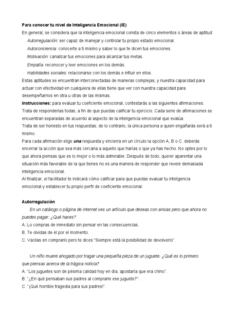 Instrucciones: para evaluar tu coeficiente emocional, contestarás a las siguientes afirmaciones.