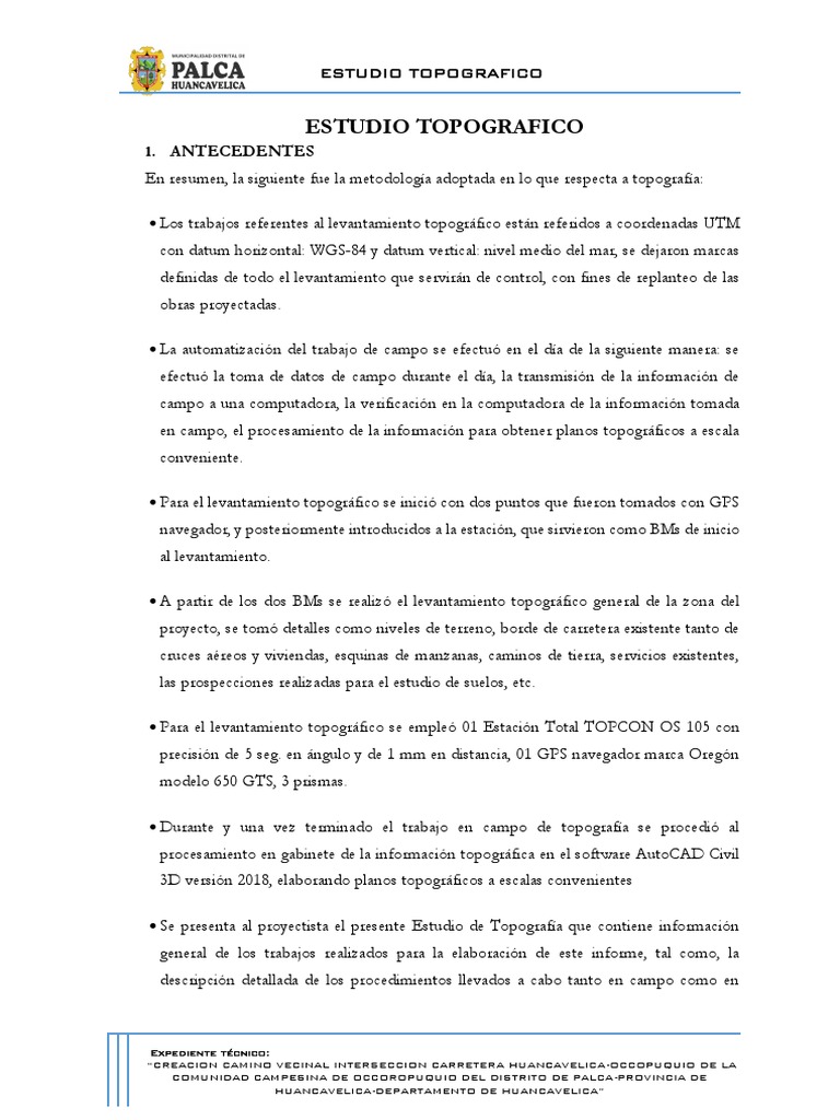 En resumen, la siguiente fue la metodología adoptada en lo que respecta a topografía: