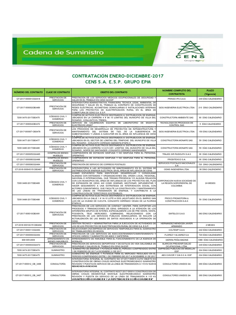 subestaciones y lÃ-neas en Sistema de Distribución Local de CENS S.A. E.S.P. ESPECIALIZADAS S.A.S