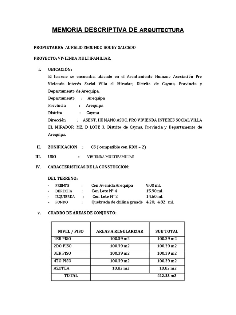 MEMORIA DESCRIPTIVA DE ARQUITECTURA