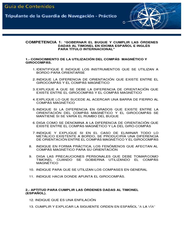 2.- APTITUD PARA CUMPLIR LAS ÓRDENES DADAS AL TIMONEL (INGLÉS).