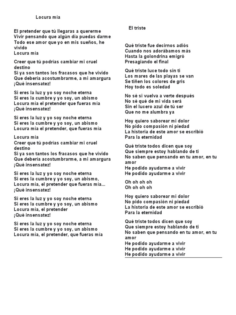 Locura mía el pretender, que fueras mía No pido compasión ni piedad