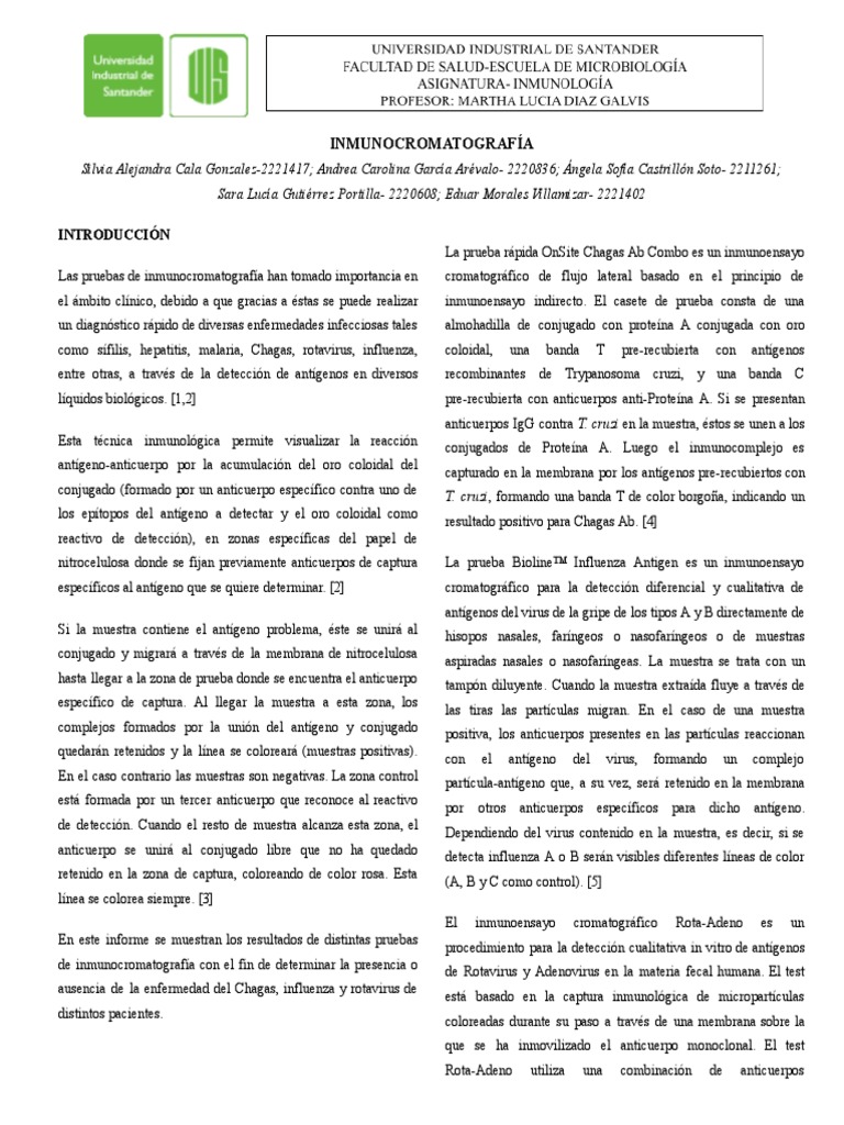Las pruebas de inmunocromatografía han tomado importancia en cromatográfico de flujo lateral basado en el principio de