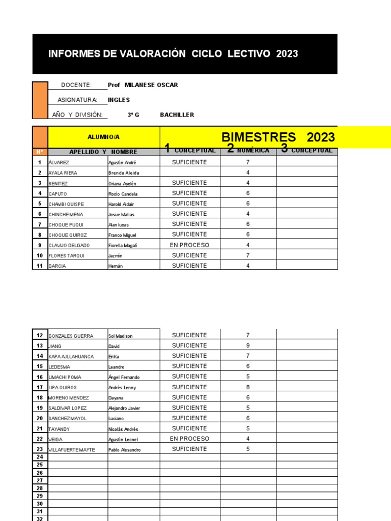 INFORMES DE VALORACIÓN CICLO LECTIVO 2023