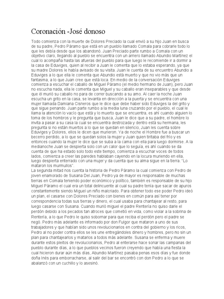 de su padre, Pedro Páramo que está en un pueblo llamado Comala para cobrarle todo lo