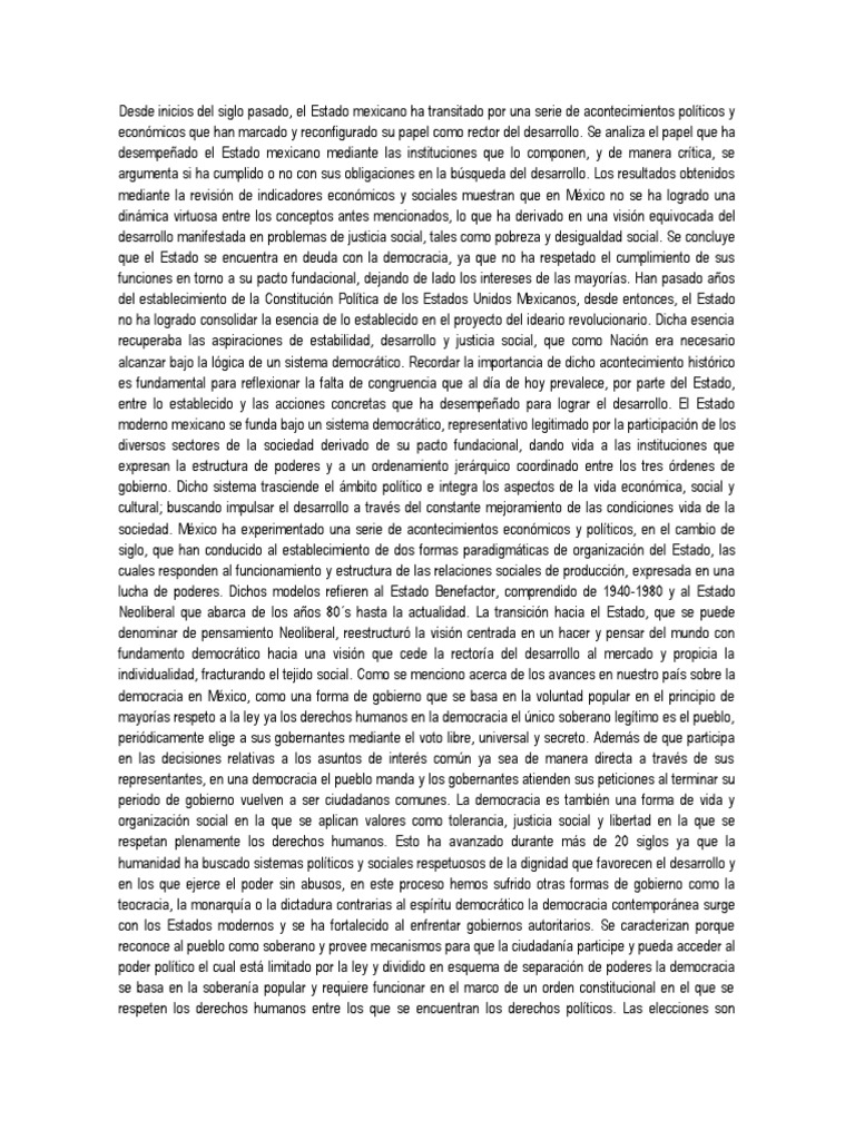 desempeñado el Estado mexicano mediante las instituciones que lo componen, y de manera crítica, se
