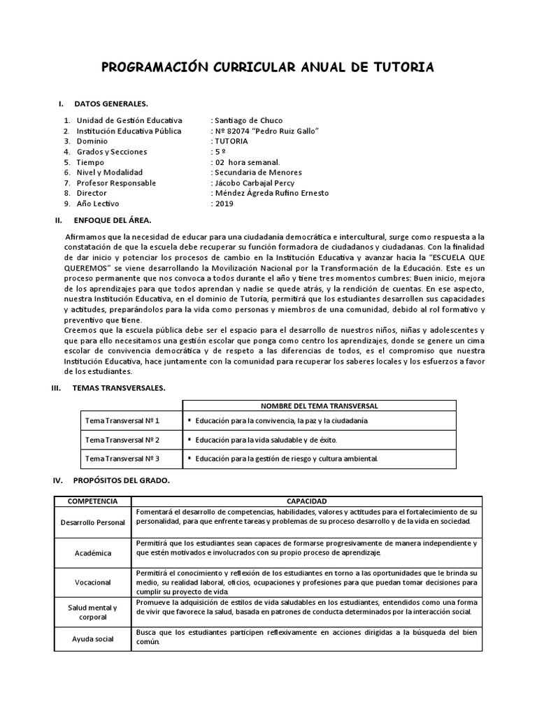 nuestra Institución Educativa, en el dominio de Tutoría, permitirá que los estudiantes desarrollen sus capacidades