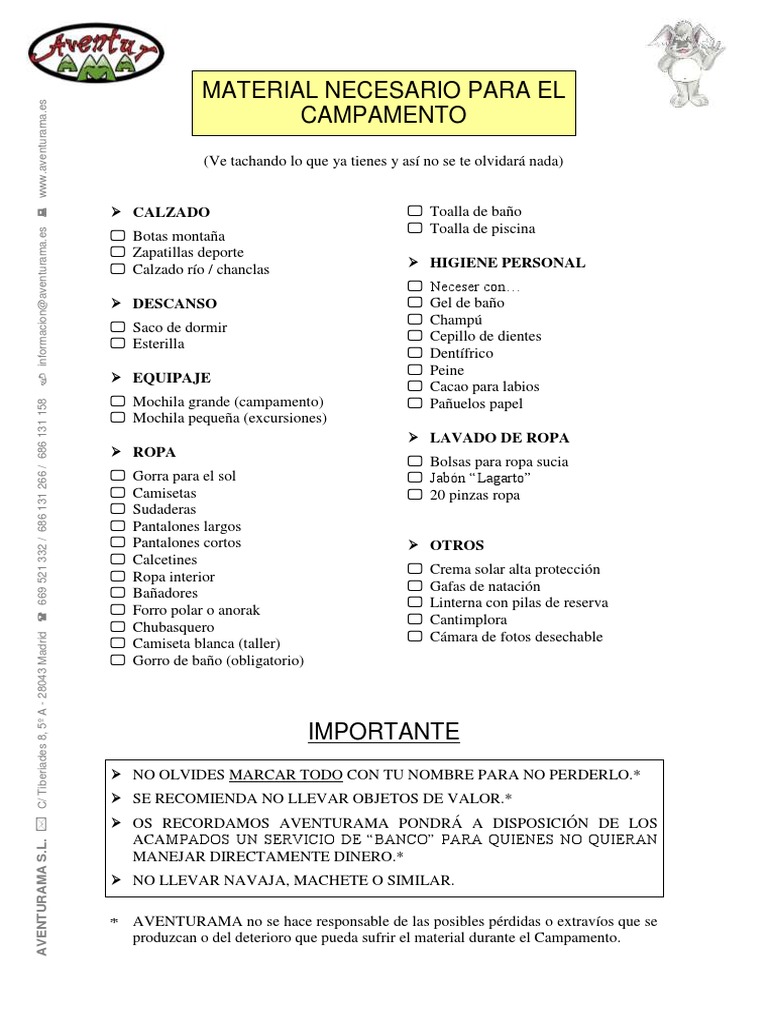 AVENTURAMA no se hace responsable de las posibles pérdidas o extravíos que se