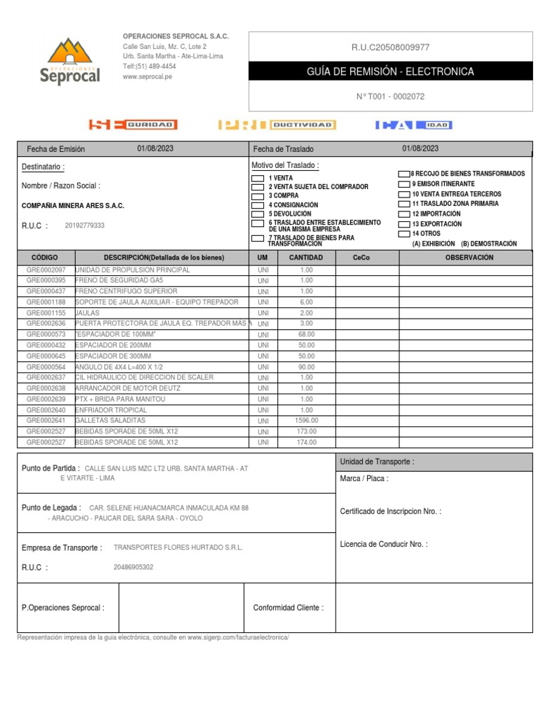 Representación impresa de la guia electrónica, consulte en www.sigerp.com/facturaelectronica/