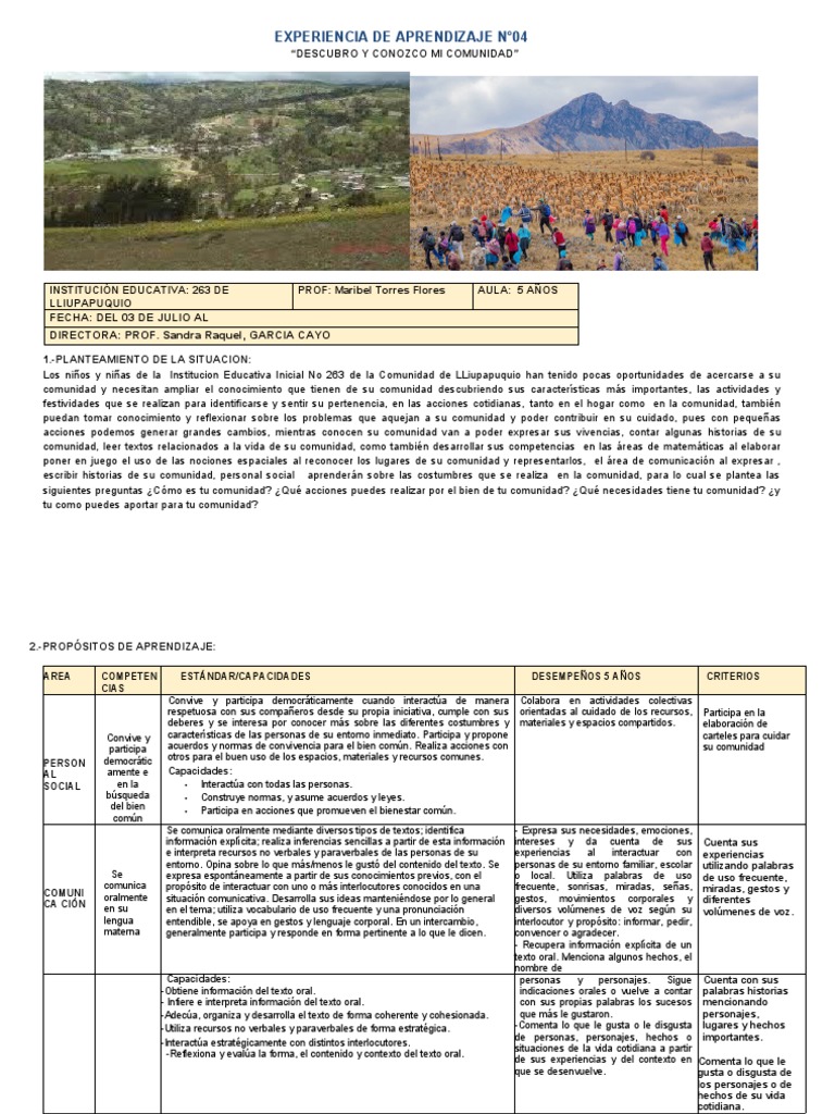 escribir historias de su comunidad, personal social aprenderán sobre las costumbres que se realiza en la comunidad, para lo cual se plantea las