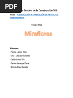 MERCADO / VENTAS El proyecto cuenta con 08 preventas o promesa de compraventa de bien futuro. Las