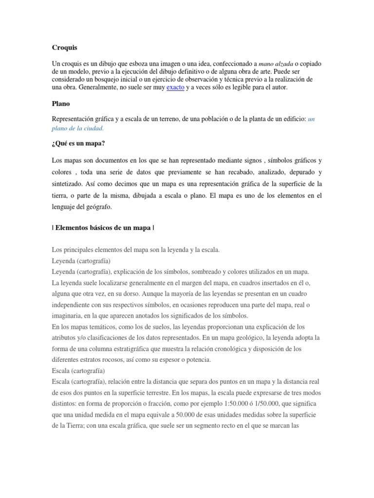 Representacin grfica y a escala de un terreno, de una poblacin o de la planta de un edificio: un plano de la ciudad. Qu es un mapa? Los mapas son documentos en los que se han representado mediante signos , smbolos grficos y colores , toda una serie de datos que previamente se han recabado, analizado, depurado y sintetizado. As como decimos que un mapa es una representacin grfica de la superficie de la tierra, o parte de la misma, dibujada a escala o plano. El mapa es uno de los elementos en el lenguaje del gegrafo.