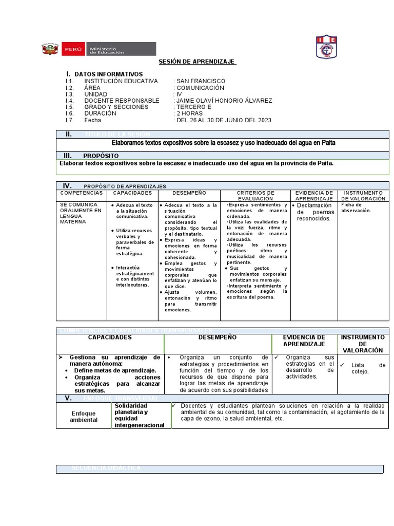 SESIÓN DE APRENDIZAJE