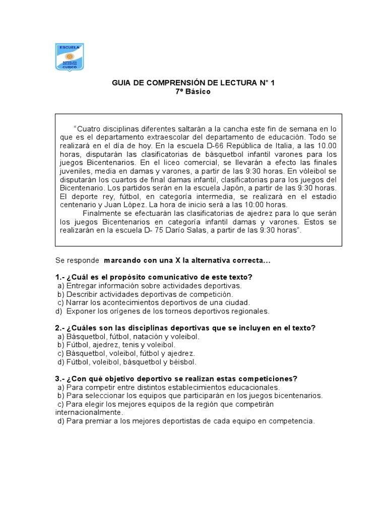 GUIA DE COMPRENSIÓN DE LECTURA N° 1
