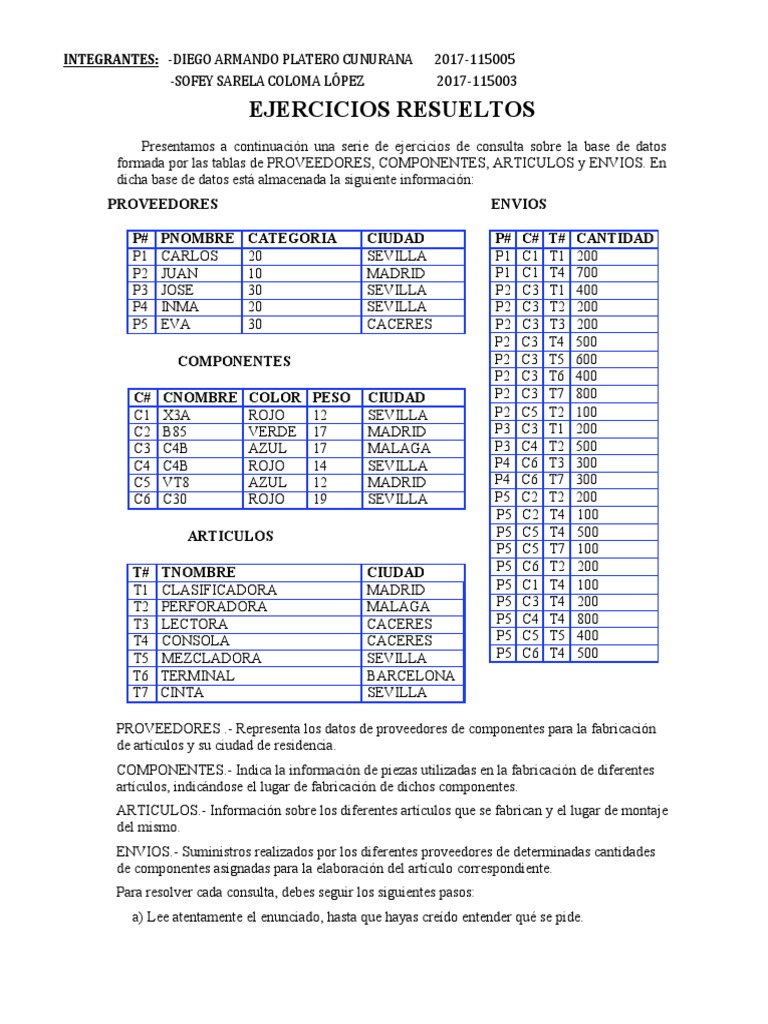 formada por las tablas de PROVEEDORES, COMPONENTES, ARTICULOS y ENVIOS. En