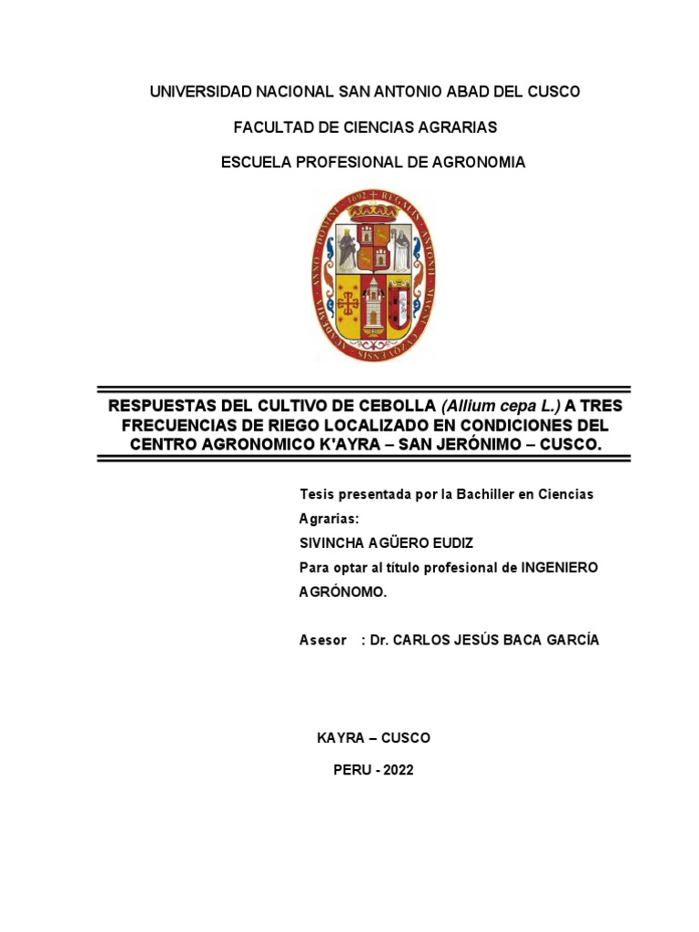 Respuestas de cebolla a riego en Cusco