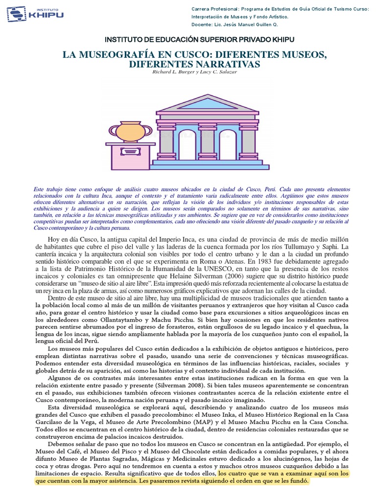 ejemplo, el guión narrativo del Museo Inka destaca igual o mayor importancia que los desarrollos post-