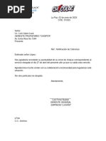 Ref.: Aviso de cancelación de contrato o convenio de publicidad y marketing.